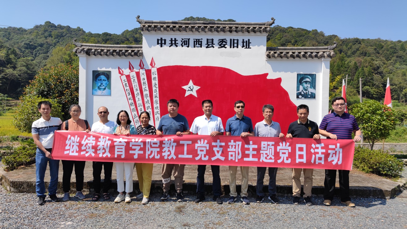 ?為深入學(xué)習(xí)貫徹習(xí)近平總書(shū)記在慶祝建黨100周年大會(huì)上的講話精神,從黨的百年奮斗歷程中凝聚奮進(jìn)的智慧和力量,9月18日,繼續(xù)教育學(xué)院教工黨支部來(lái)到市紅色教育基地——浮梁縣蛟潭鎮(zhèn)胡宅村中共河西縣委舊址,開(kāi)展“學(xué)百年黨史聚奮進(jìn)力量”主題黨日活動(dòng)。