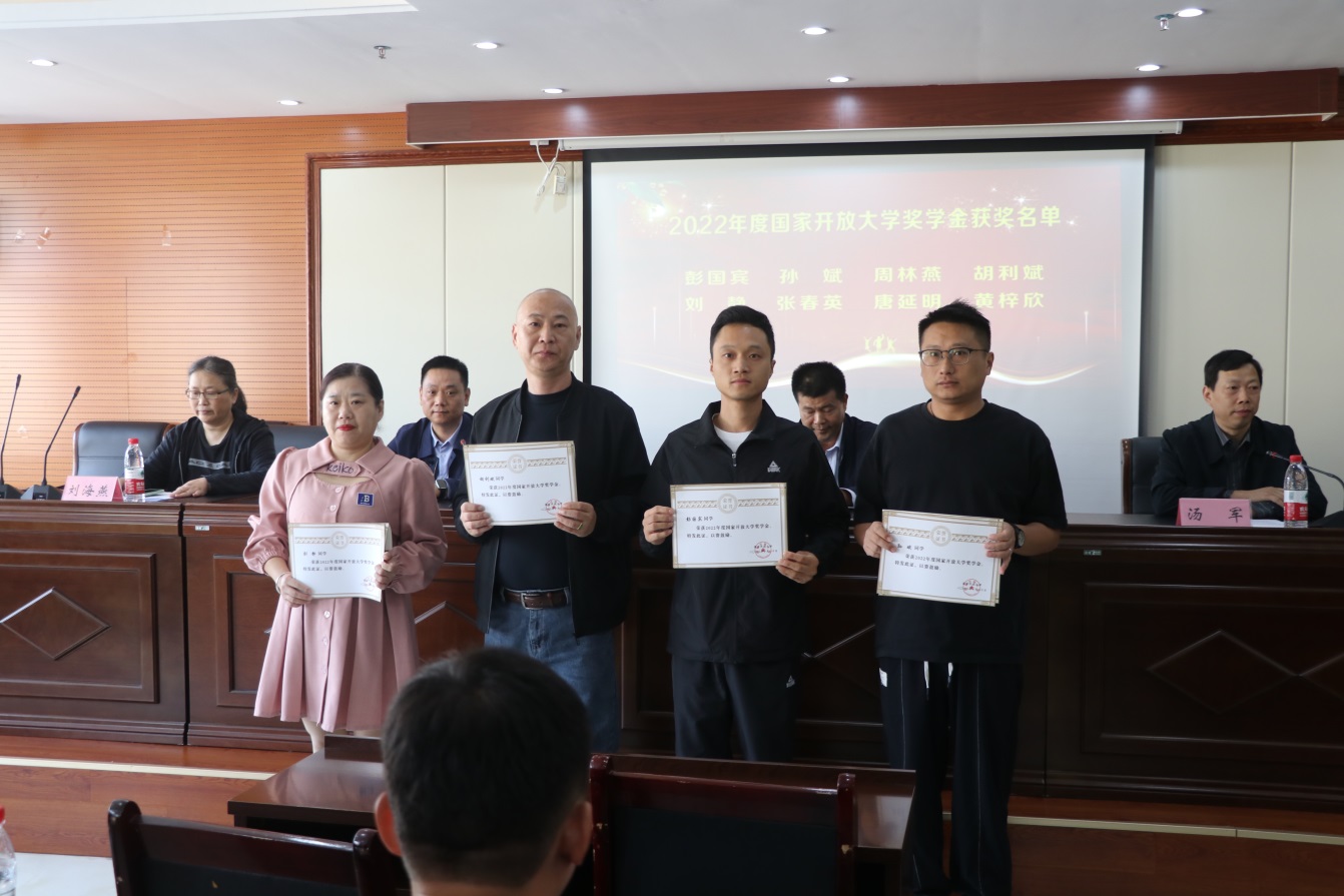 副校長諸文峰宣讀了《關(guān)于公布2022年度國家開放大學(xué)獎(jiǎng)學(xué)金評(píng)審結(jié)果的通知》,與會(huì)校領(lǐng)導(dǎo)為獲獎(jiǎng)學(xué)生代表頒獎(jiǎng)。