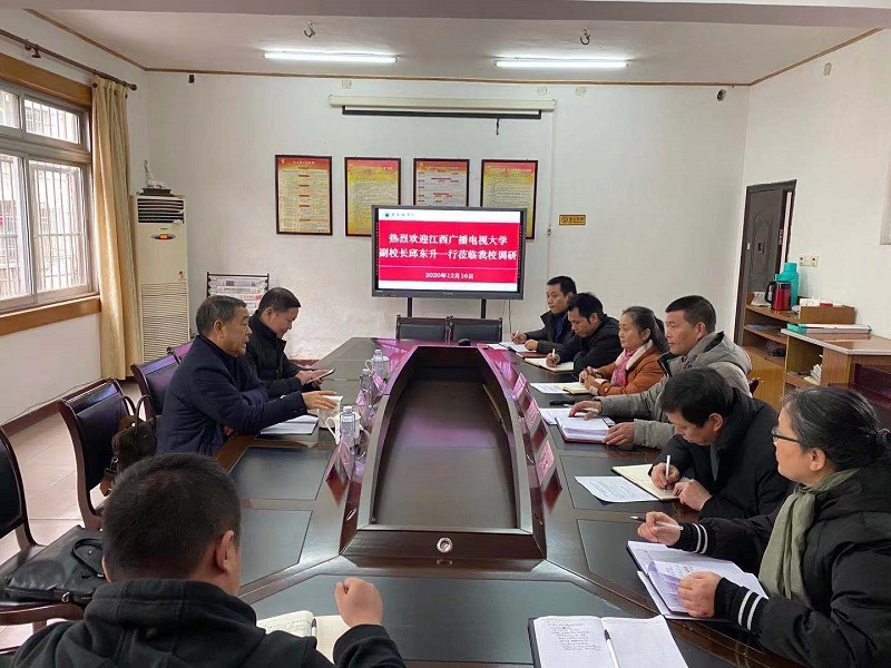 12月16日,江西開放大學(xué)黨委委員、副校長邱東升一行三人來我校宣講黨的十九屆五中全會精神,并就全省電大系統(tǒng)重點工作推進(jìn)會精神落實、高職擴招和學(xué)校更名相關(guān)情況召開調(diào)研座談會。