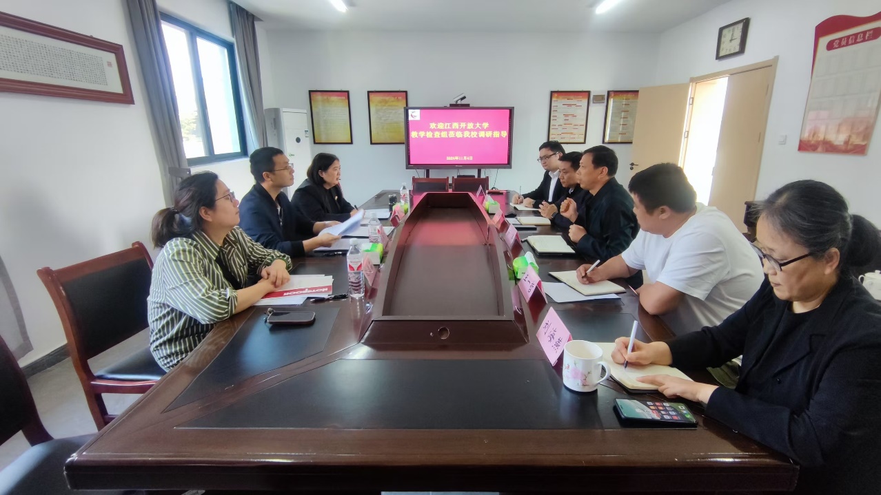 2024年11月4日下午,江西開放大學(xué)智能技術(shù)學(xué)院院長程海水等一行3人蒞臨我校開展2024年開放教育綜合教學(xué)檢查。校長湯軍、副校長諸文峰及相關(guān)處室負(fù)責(zé)人參加會議。